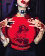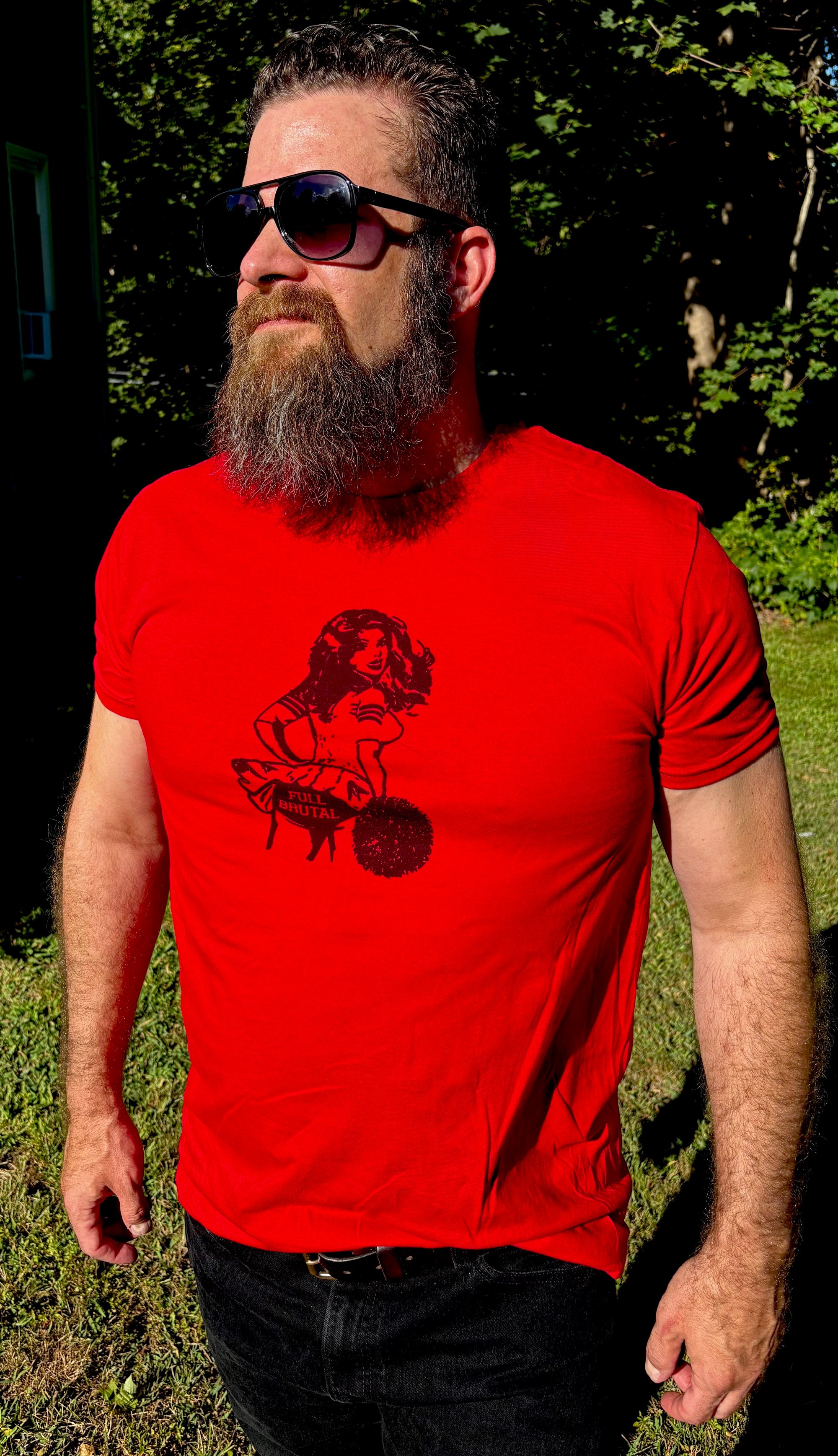 Official FULL BRUTAL t-shirt! Show your love for your favorite cannibal cheerleader with style! Red with black image. Made with US grown cotton.